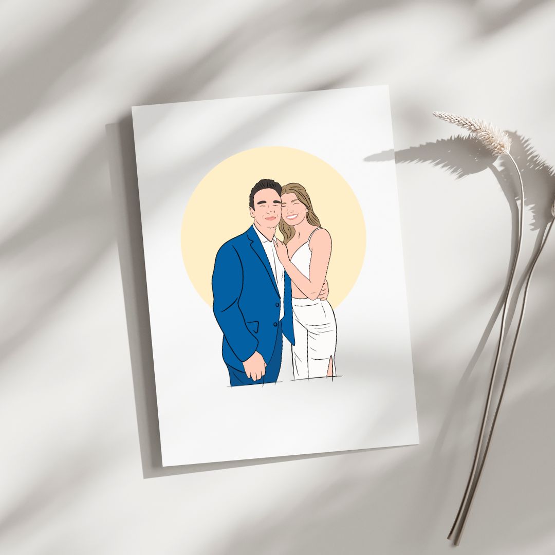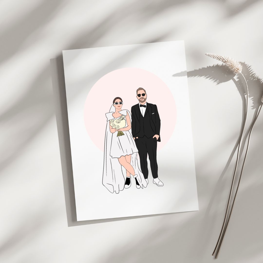 Plazo para envío de fotos: Para asegurar la creación de todas las ilustraciones dentro del tiempo estipulado, es imprescindible que las fotos sean enviadas con un mínimo de 3 a 4 meses de antelación a la fecha de la boda.